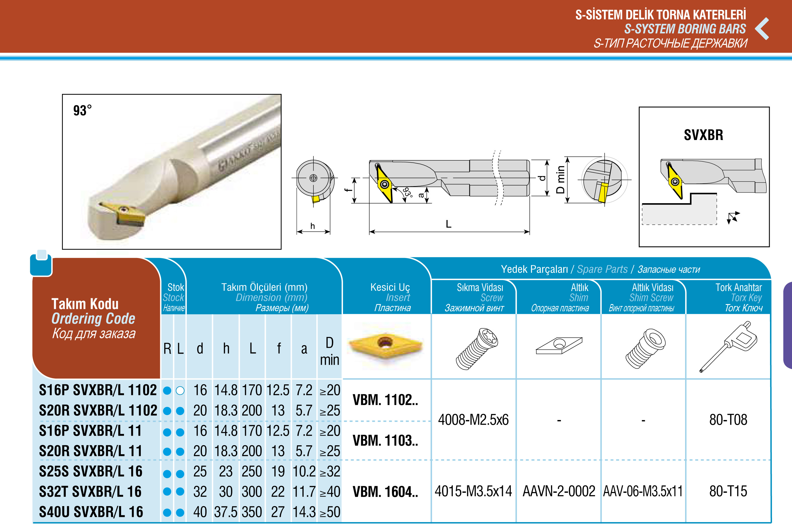 Державка расточная S40U SVXBR 16