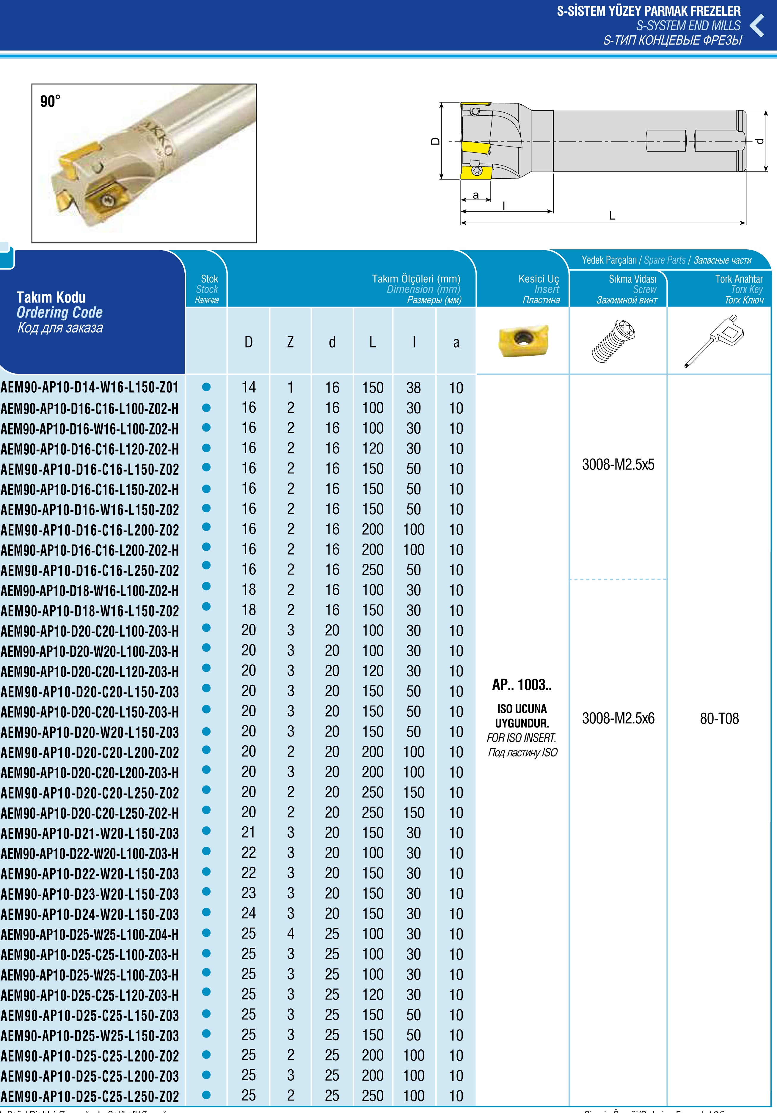 Корпус фрезы AEM90-AP10-D21-W20-L150-Z03
